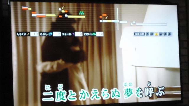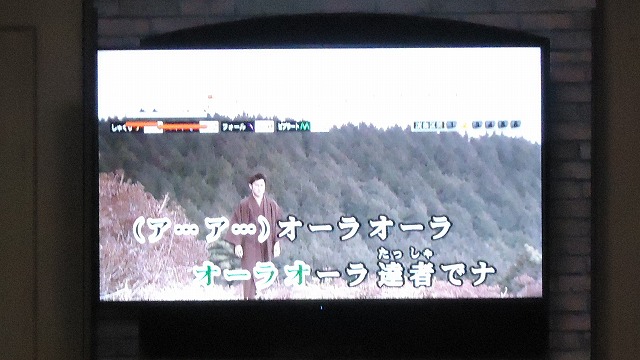 | 郡司さんが歌った「あばれ太鼓」の画面 | |