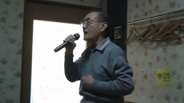 | 「あばれ太鼓」を熱唱する日置さん | |