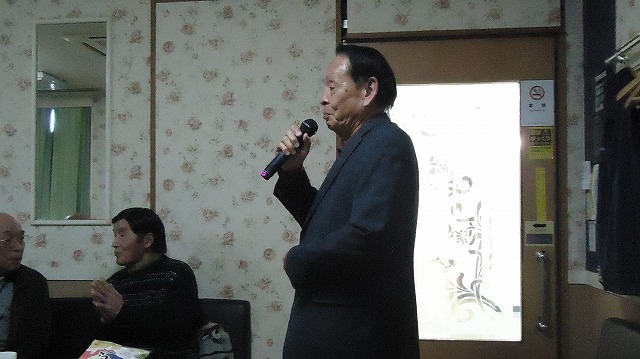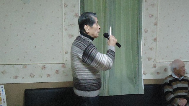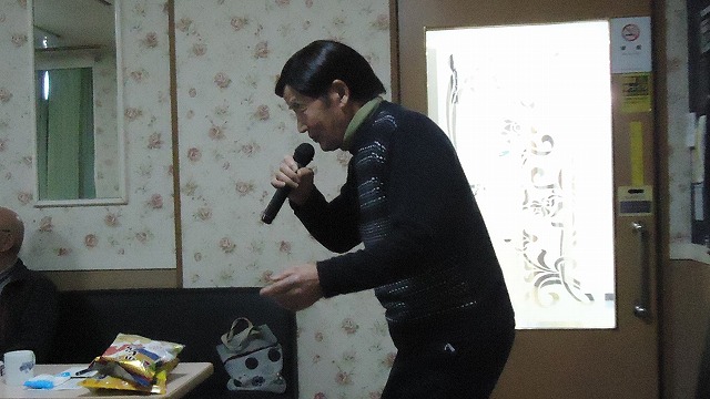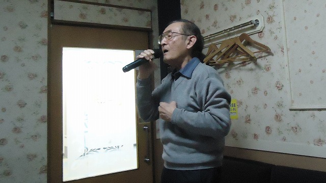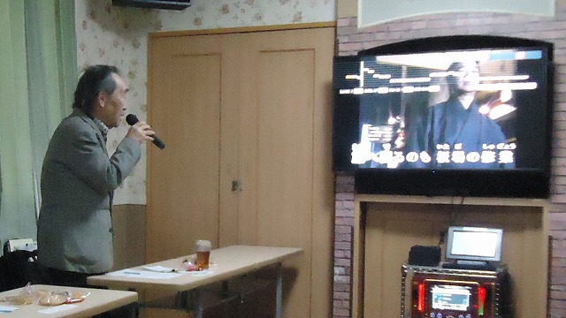 | 「望郷酒場」を熱唱する日置さん | |