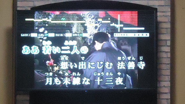 | 日置さんが歌った「望郷酒場」の画面 | |