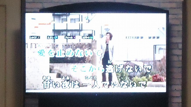 | 福田さんが歌った「愛を止めないで」の画面 | |