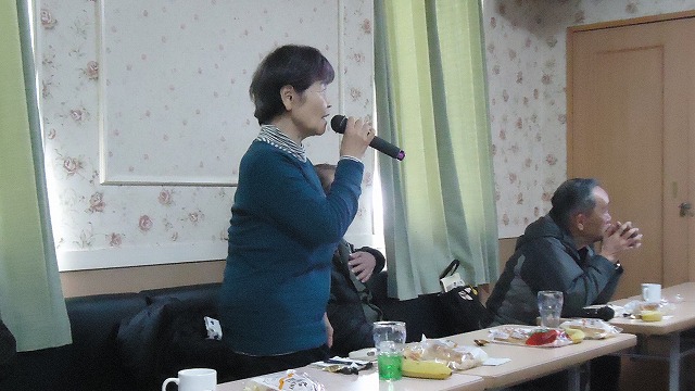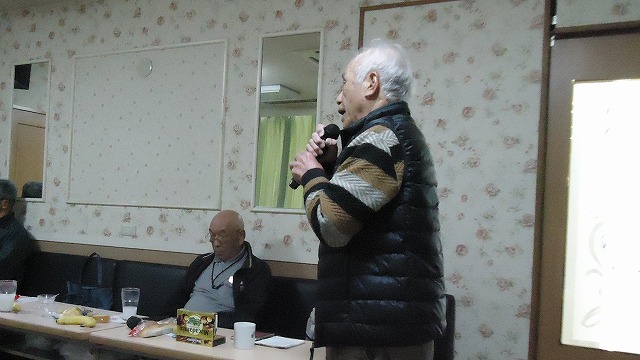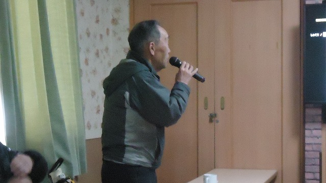| 「冬の花」を熱唱する久々に参加した黒須さん | |