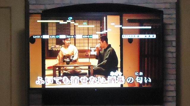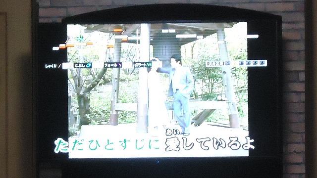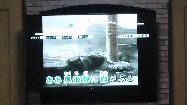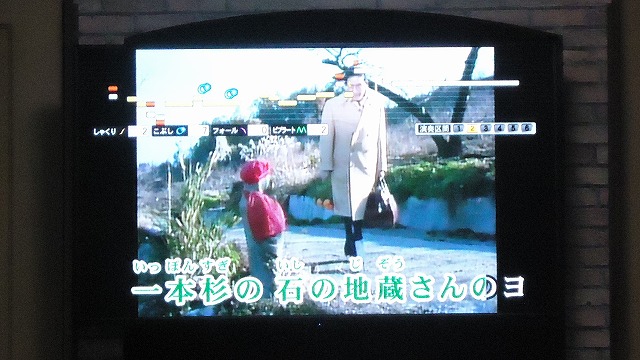 | 日置さんが歌った「奥飛騨慕情」の画面 | |