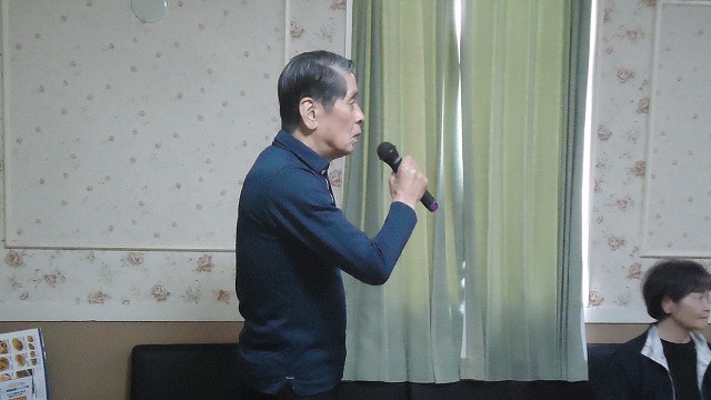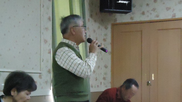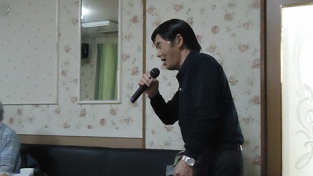 | 「あの丘越えて」を熱唱する郡司さん | |