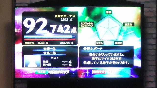 | 安藤さんが「夫婦一生」を歌い、出した最高得点画面 | |