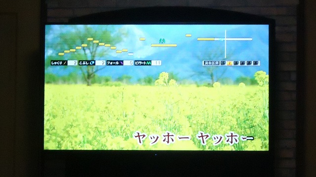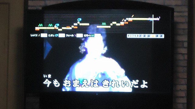| 日置さんが歌った「あばれ太鼓」の画面 | |