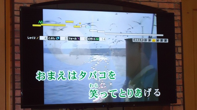 | 黒須さんが歌った「ふたり酒」の画面 | |