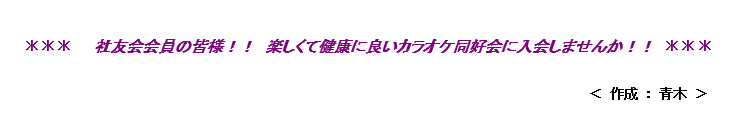 今回は男性8名、女性1名の参加で順番に合計6曲を歌い | |