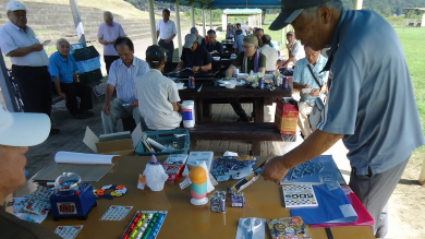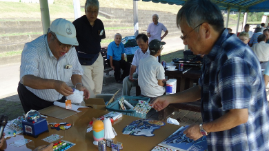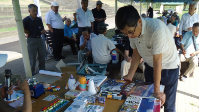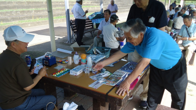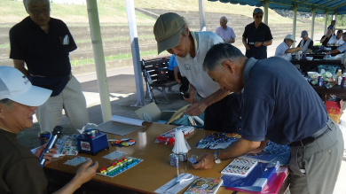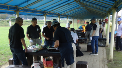役員は10時に集合、食材・調理器具・炭・ビンゴの準備完了し、会員さんの誘導と集金にあたります