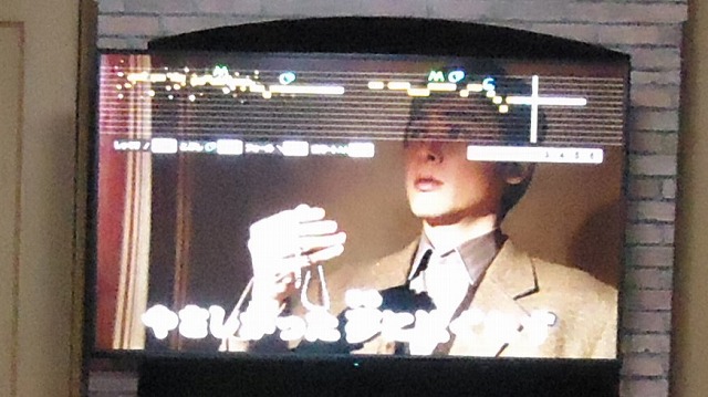 | 日置さんが歌った「さざんかの宿」の画面 | |