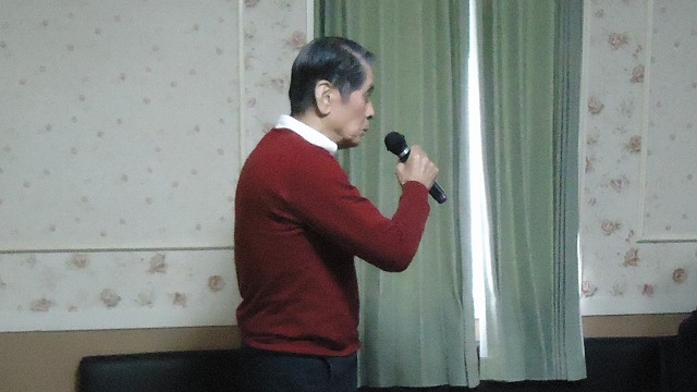 | 「あばれ太鼓」を熱唱する郡司さん | |