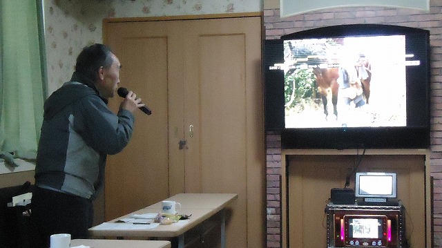 | 福永さんが歌った「与作」の画面 | |