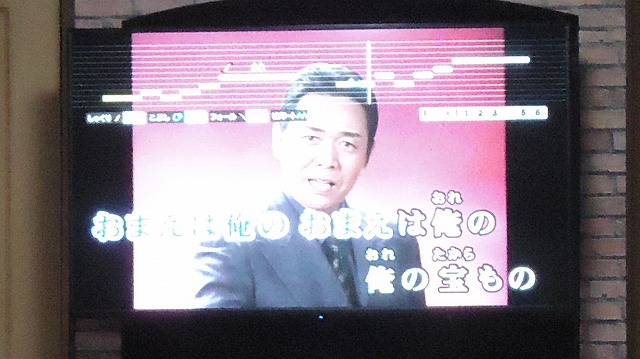 | 日置さんが歌った「あばれ太鼓」の画面 | |