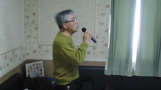 今回は男性9名の参加で順番に合計5曲を歌い | |