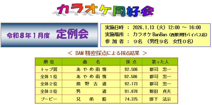 | 1月度カラオケ定例会参加者!! | |