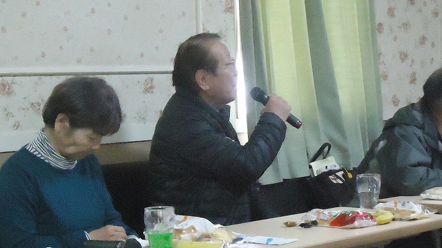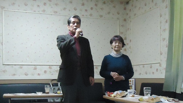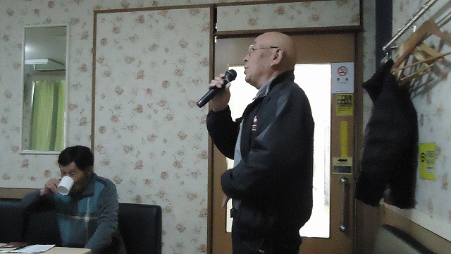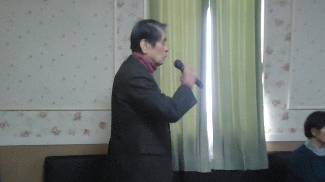 | 「冬の花」を熱唱する久々に参加した黒須さん | |