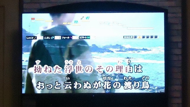 | 日置さんが歌った「奥飛騨慕情」の画面 | |