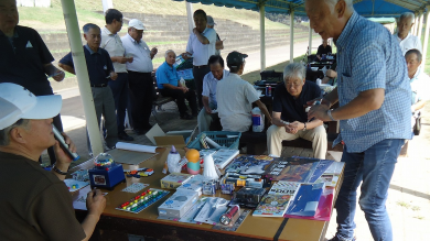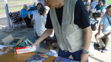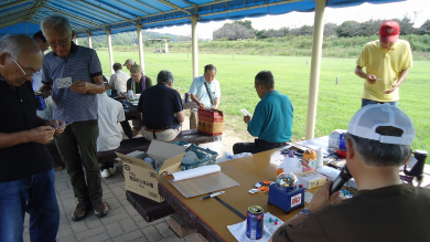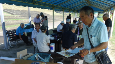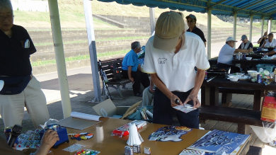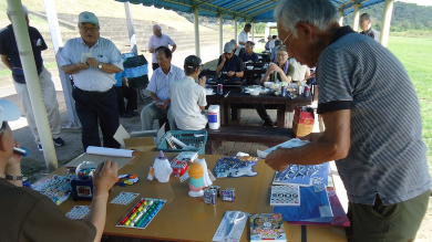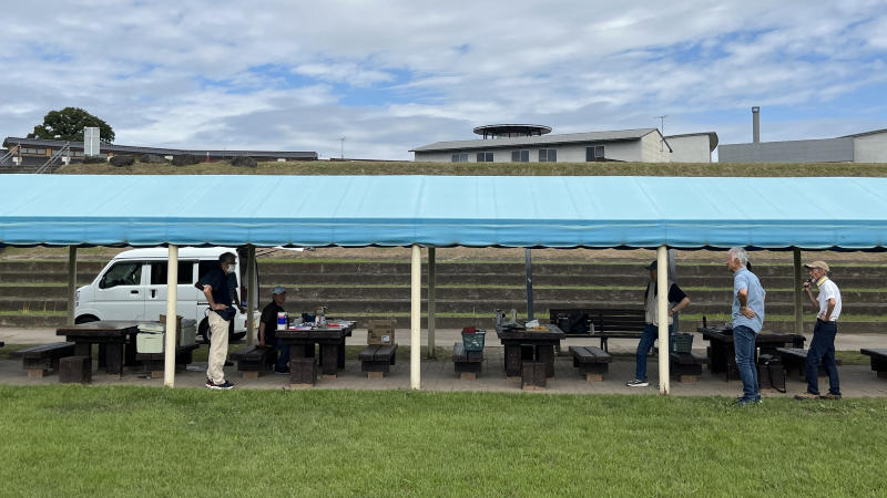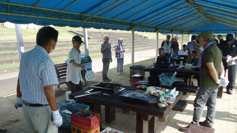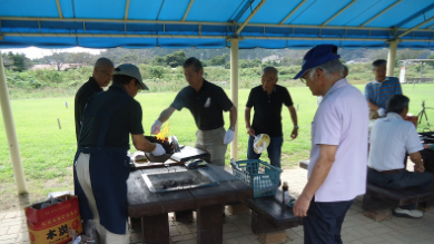 役員は10時に集合、食材・調理器具・炭・ビンゴの準備完了し、会員さんの誘導と集金にあたります