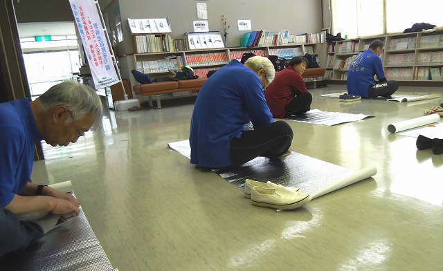真向法の第3体操をする会員。最終目標は開脚150度以上です。頑張りましょう!!