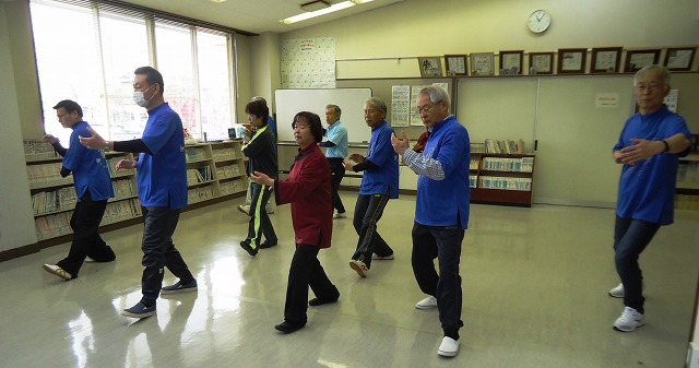 24式太極拳の『ロウ膝拗歩』を練習する会員